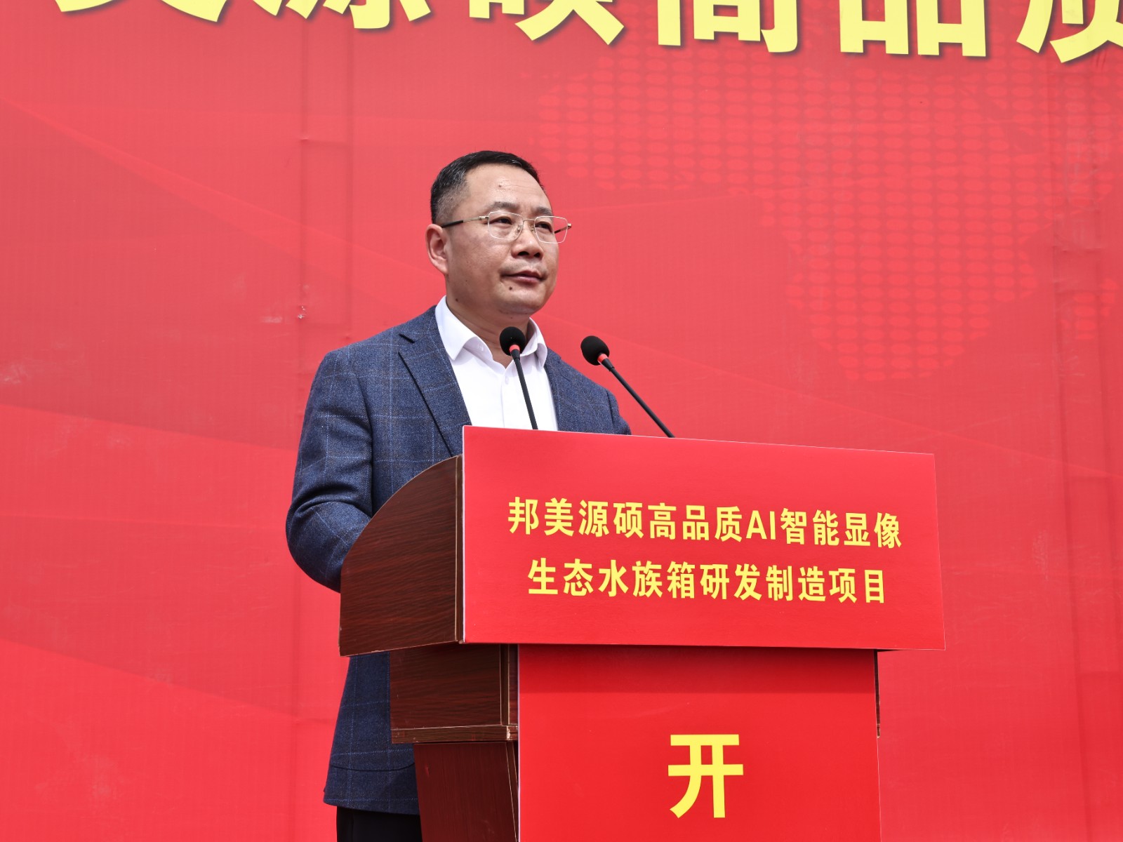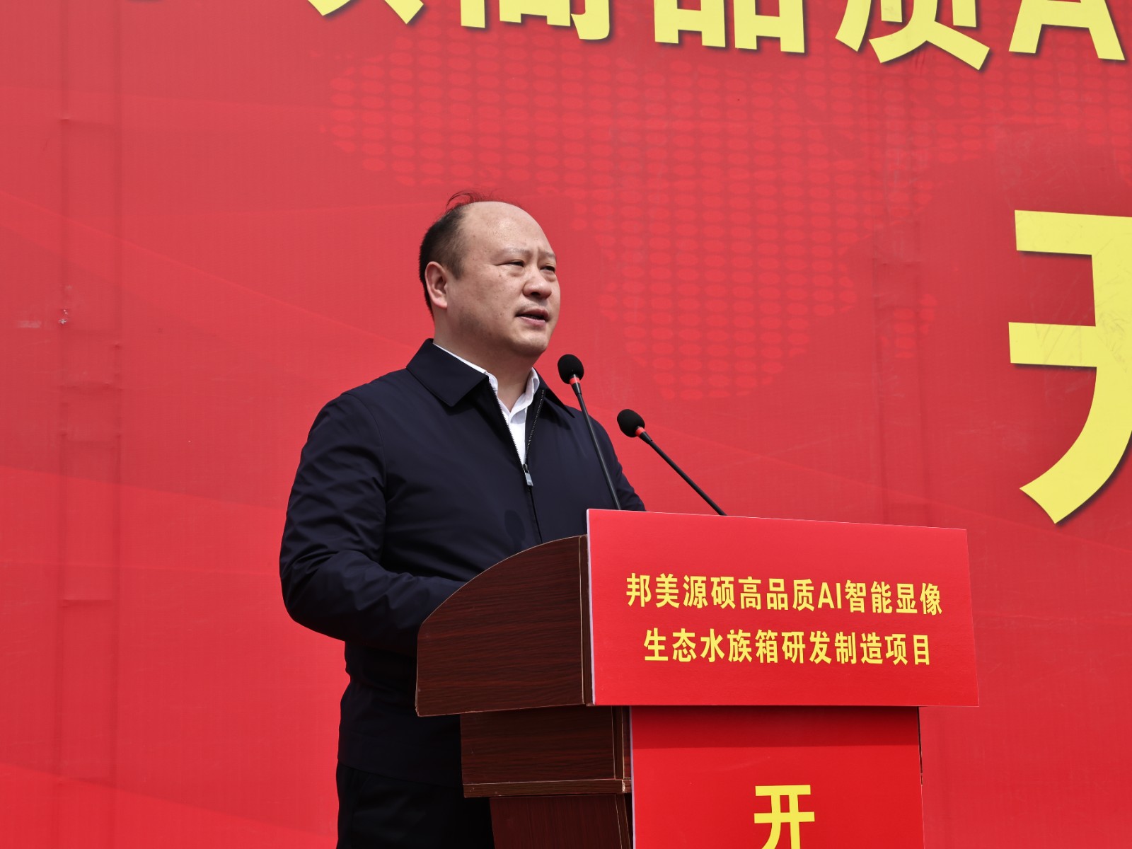 宗兆波代表市商务和投资促进局讲话并宣布项目开工。他指出,抓经济必须抓项目,强工业必须强项目。去年以来,全市上下锚定“强工兴产、项目突破”战略,突出“引商、强商、育商”三管齐下,一大批好项目、大项目相继落户滕州。今天开工的邦美源硕高品质AI智能显像生态水族箱研发制造项目,既是玻璃产业的强链延链项目,也是一个由外商独资企业投资兴建的外资项目,具备国内领先的技术工艺,其生产的AI智能显像水族箱产品性能独特、科技含量高、市场前景广阔,必将为我市玻璃产业发展壮大起到有力推动作用。他表示,市委、市政府及市商务和投资促进局将继续关注支持项目建设,强化要素保障、提供优质服务,全力为企业发展营造良好的外部环境。最后,宗兆波宣布项目正式开工。