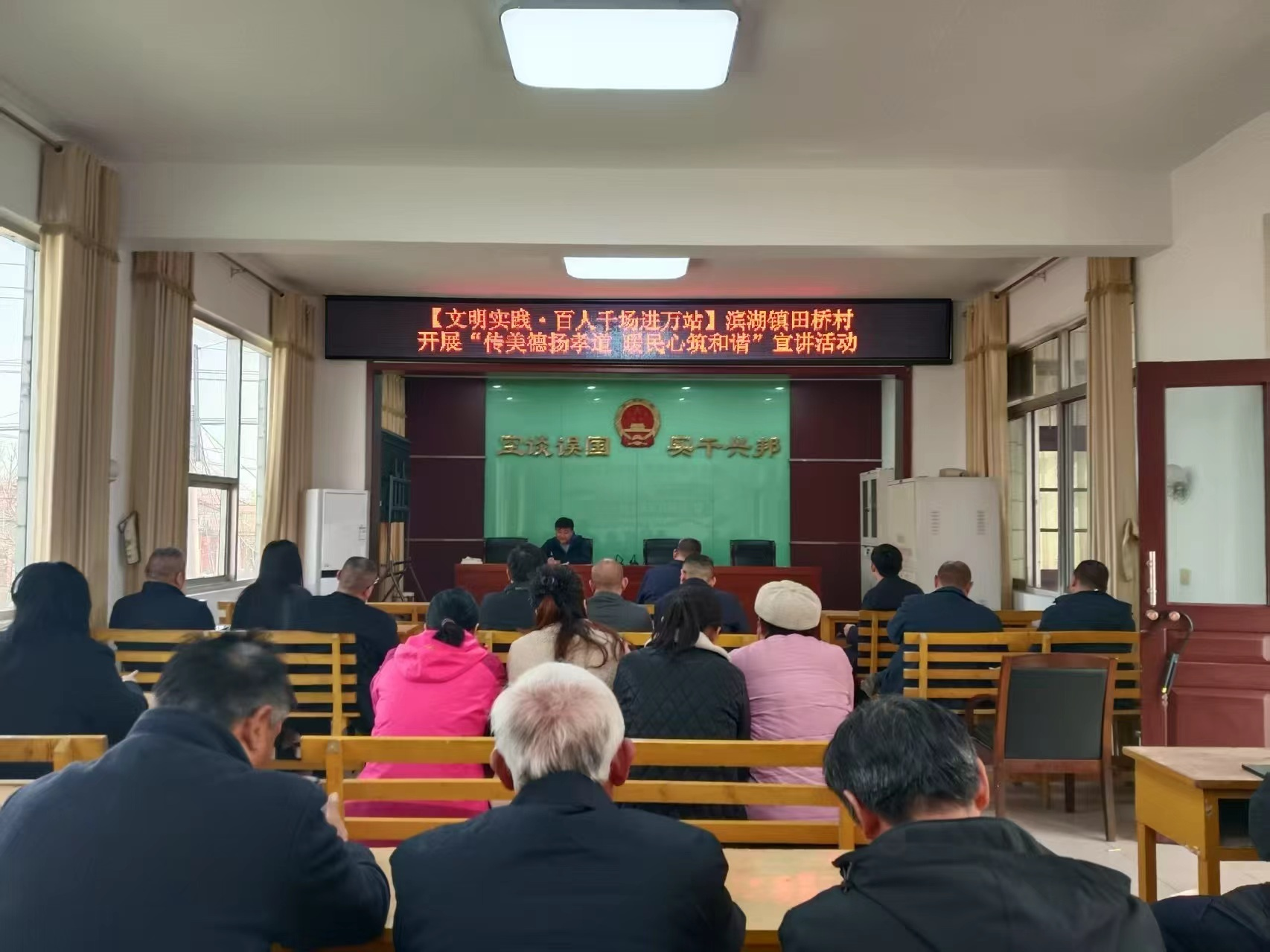 为弘扬孝老爱亲传统美德,培育文明乡风与良好家风,滨湖镇田桥村新时代文明实践站开展“传美德扬孝道 暖民心筑和谐”主题宣讲活动,引导村民以实际行动敬老爱老、共建和谐家园。