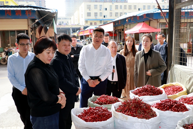 随后,考察团来到嘉誉商贸城干杂海货市场和公共保税仓库,现场听取了相关负责同志关于嘉誉专业市场及保税仓库建设情况介绍,并与经营商户交谈,对干杂海货种类、市场交易、运营管理、保税仓库规划设计、仓库部署、药食同源商品通关便利化工作开展等情况有了充分的了解,对北辛街道香辛料产业发展给予高度评价。