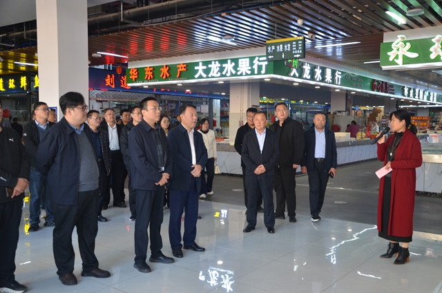 随后,观摩组深入水产粮油市场蔬菜、肉类、海产品等交易区,通过实地察看、现场询问等方式,了解市场农产品供应保障、品种结构、价格波动、商户经营状况,认为集体经济组织发展有力、农业规模经营主体示范带动效果明显,并对市场在运营管理、质量管控等方面的先进理念和成熟做法给予充分肯定。