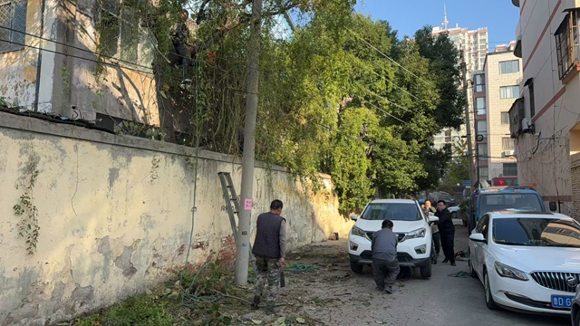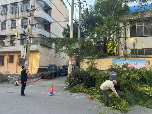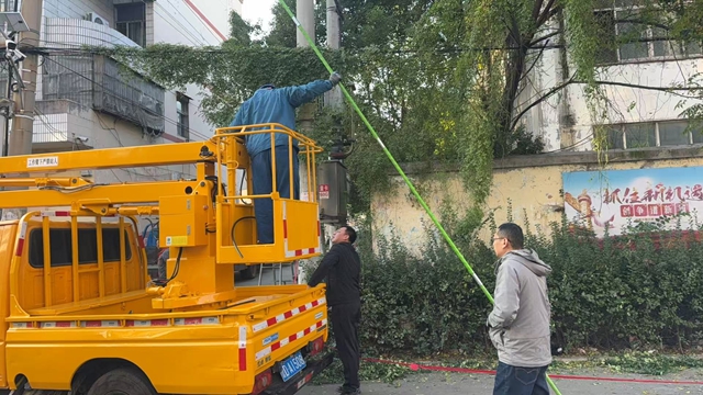 为高效解决这一问题,社区工作人员前期通过实地走访,全面排查树木安全隐患情况,详细记录存在问题的树木位置、数量及具体风险点,并积极联系专业施工团队,制定科学合理的修剪与砍伐方案,利用高空作业车、油锯等工具,对存在倒伏风险的危树进行砍伐移除,对过于茂密的枝丫进行精细化修剪,对枯萎腐朽的枝干进行彻底清理。