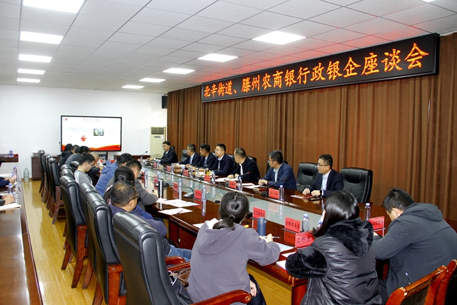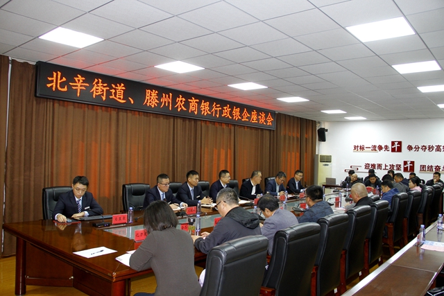 11月13日,北辛街道、滕州农商银行在四楼会议室召开政银企座谈会。北辛街道党工委委员、办事处副主任王永,滕州农商银行党委委员、副书记苏亚峰,街道领导王延峰、孟凡超,滕州农商银行领导徐泽建、刘根成、裴家宽,相关工作岗主管及街道企业代表参加会议。