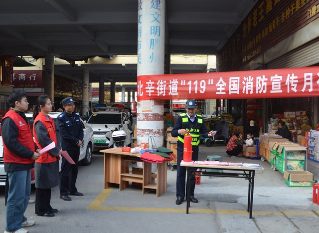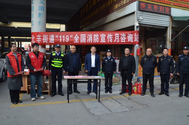 为全面夯实市场消防安全管理基础,切实防范化解火灾风险,保障商户生命财产安全与消费者购物安全,11月13日下午,北辛街道在嘉誉市场开展“119”全国消防宣传月活动。党工委副书记闵庆跃,应急安全保障中心主任王艳波,相关街直部门、相关工作岗及有关社区参加活动。