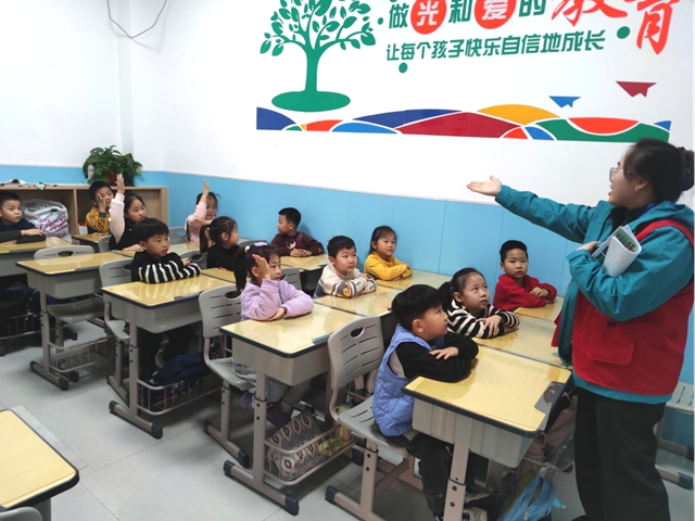 在辖区托管儿童班级,宣传活动变身趣味课堂。宣讲人员通过图文展示、互动问答、分类小游戏等形式,帮助孩子们认识垃圾危害与分类意义,手把手教大家辨别不同垃圾。孩子们踊跃抢答、积极参与,在欢乐中掌握分类知识,立志成为“垃圾分类小宣传员”。