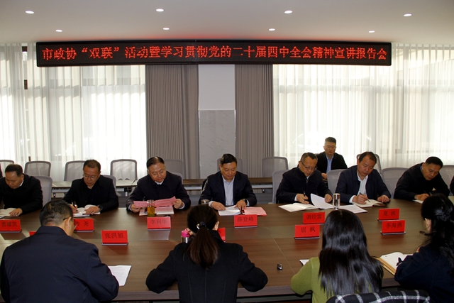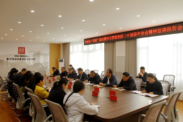 宣讲中,薛登峰从党的二十届四中全会的重大历史意义出发,围绕“十四五”时期我国经济社会发展成就、“十五五”时期在社会主义现代化进程中的承前启后作用、经济社会发展的指导方针与主要目标、战略任务与重大举措、坚持党的全面领导的根本要求,以及推动全会精神在教育系统落地落实等方面,作了系统阐述和深入解读。宣讲既立足理论高度,又贴近教育实际,为推动教育系统进一步学习贯彻全会精神、办好人民满意的教育提供了重要指导。随后,教育界别召集人、常委代表、委员代表分别进行2025年工作开展情况汇报、述职和交流发言。