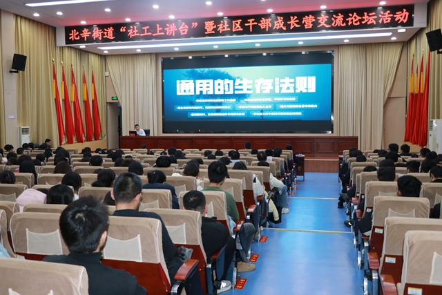为进一步加强社工队伍建设,激发干事创业活力与创新潜能,12月19日,北辛街道在东二楼报告厅举办“社工上讲台”暨社区干部成长营交流论坛活动。党工委委员、武装部部长、组织委员韩博主持会议;街道领导闵庆跃、刘冉冉、张葳,全体社区工作者参加会议。