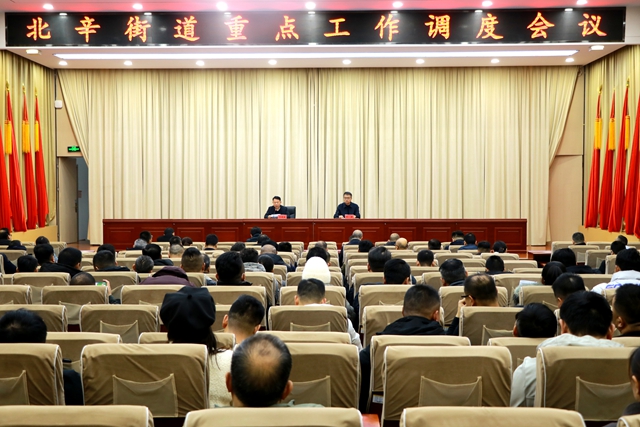 12月22日,北辛街道在东二楼报告厅召开重点工作调度会议。党工委副书记闵庆跃主持会议并讲话。街道全体领导干部,街直部门负责人,全体机关干部,各片区综合党委书记、社区党委书记,各居(网格)、股份经济联合社党支部书记参加会议。