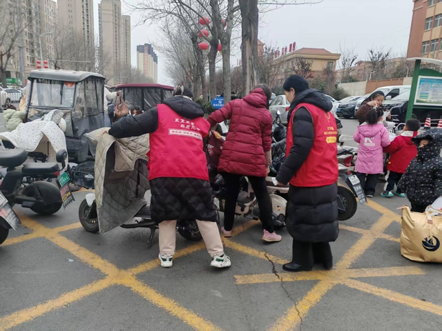 在辖区各中小学门口,各社区身穿红色志愿马甲的社区工作人员与学校保安、交警协同配合值守,关注附近动态,引导学生安全、快速通过马路,防止人员拥挤、冲撞。通过社区志愿者的以身作则、现场引导,学生及家长的交通安全意识明显提升,从源头上增强了学生的自我保护能力。“护学行动”的开展,校门前道路拥堵现象得到有效缓解,车辆通行效率提高,社区工作人员们的辛勤付出赢得了广大家长、师生和居民的广泛赞誉,家长和学生的安全感、满意度显著提高。