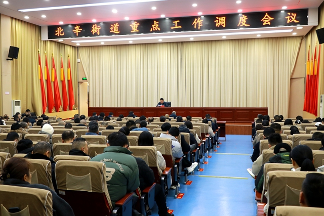 1月5日,北辛街道在东二楼报告厅召开重点工作调度会议。党工委副书记闵庆跃主持会议并讲话。街道全体领导干部,街直部门负责人,全体机关干部,各片区综合党委书记、社区党委书记,各居(网格)、股份经济联合社党支部书记参加会议。