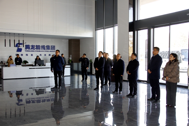 王闯一行实地来到山东腾达特种钢丝科技有限公司,听取相关工作汇报,深入生产车间、研发中心实地察看生产运行、研发进度等情况,详细了解企业经营业绩、生产计划、市场拓展布局,未来产业规划并就有关工作同企业负责人进行深入沟通交流。