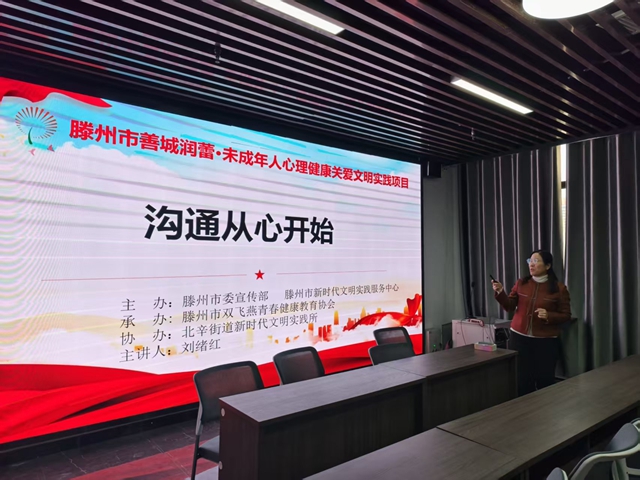 为扎实推进“善城润蕾·未成年人心理健康关爱”文明实践项目,破解亲子沟通困境,搭建家庭心灵桥梁,大同社区新时代文明实践站特邀滕州市双飞燕青春健康教育协会资深心理学专家刘绪红老师,开展“沟通从心开始”主题讲座。30余组亲子家庭齐聚一堂,在专业老师引领下探寻有效沟通的密码,为未成年人健康成长注入温暖力量。