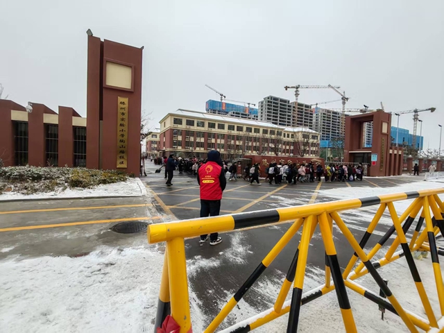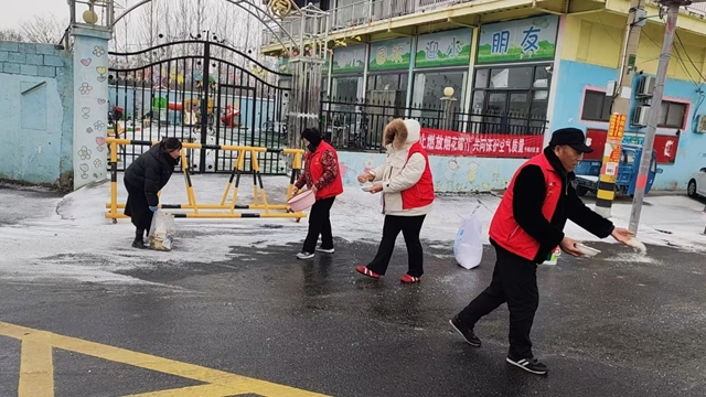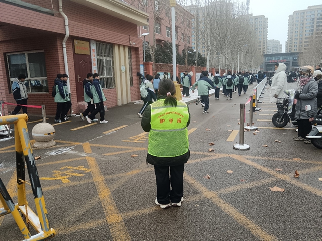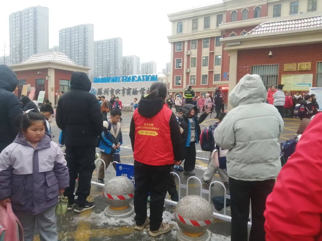 鲜艳的红色马甲成为街头最亮眼的风景,他们不畏严寒、分工协作,不仅将校园周边积雪清扫干净,更主动参与护学行动,用汗水为辖区中小学生打通出行的“暖心通道”。