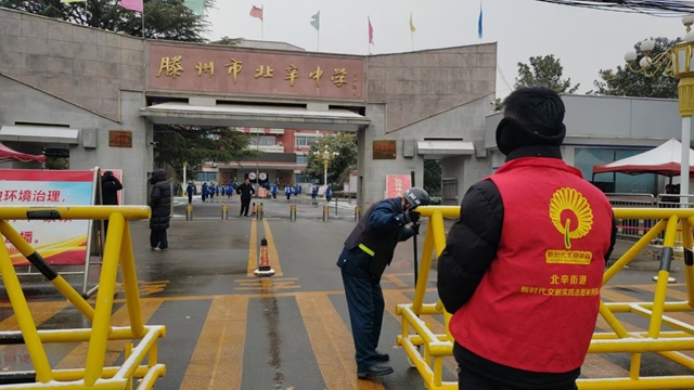 为保障辖区中小学生出行安全顺畅,1月19日,北辛街道组织辖区志愿者开展护学志愿服务活动。