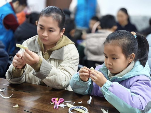 为传承非遗文化记忆,搭建亲子协作平台,近日,北辛街道北辛路社区新时代文明实践站开展“非遗润童心・编织传家情”主题活动。多组亲子家庭齐聚一堂,在指尖翻飞间感受玉米皮编织的独特魅力。