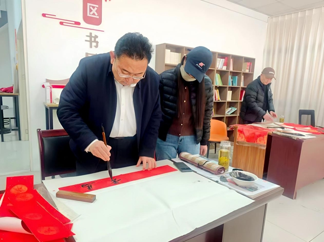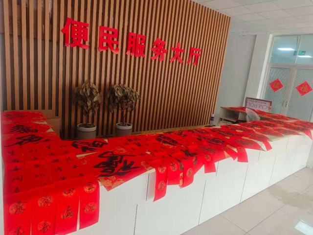 活动现场,书法家们在活动现场挥毫泼墨,红纸铺展,墨香四溢。他们根据居民的喜好,写下了一幅幅寓意吉祥、饱含祝福的春联与“福”字。“喜迎四季平安福 美纳八方富贵财”“生意兴隆通四海,财源茂盛达三江”……一份份美好的祝福跃然纸上。居民与商户们围在桌旁,目不转睛地看着书法老师一笔一划将祝福凝于纸上,现场洋溢着浓浓的年味与温情。“手写的春联更有年味,也更有感情,不像印刷品那样千篇一律,我们特别喜欢!”不少居民在领取到春联后欣喜地表示。