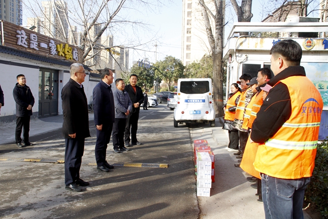 新春将至,2月16日,北辛街道党工委书记夏波,党工委副书记、办事处主任吕长胜带队深入辖区看望春节期间坚守一线干部职工,代表街道党工委、办事处向常年坚守奋战在一线的广大干部职工致以崇高的敬意和节日的问候,并送去慰问物资与新春的美好祝福。北辛街道党工委委员、办事处副主任孔超,便民服务中心主任刘勇,有关片区负责人及相关工作岗分别参加活动。