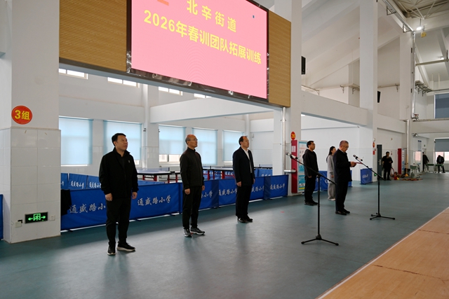 奋力再跳,乘势攀峰。2月24日,北辛街道在通盛路小学体育馆内举行2026年春训团队拓展训练活动,用一场运动,开启元气新一年。北辛街道党工委书记夏波作动员讲话;党工委副书记、办事处主任吕长胜主持活动。街道全体领导干部和全体机关干部参加活动。