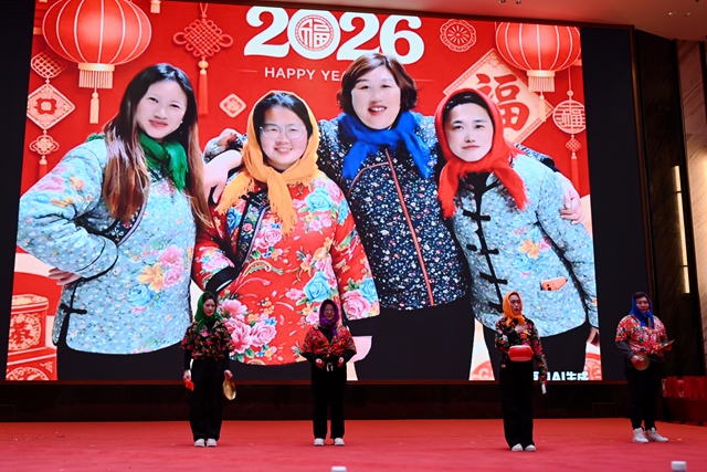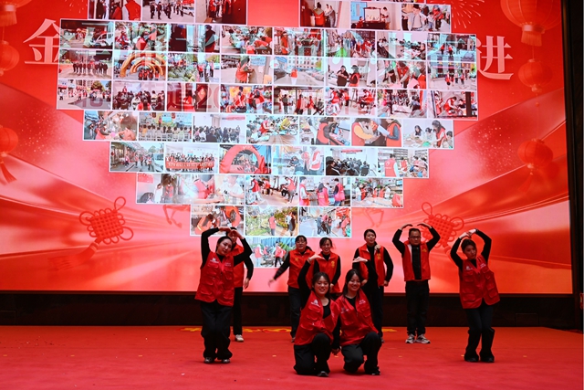 演出过程中还穿插了抽奖和2026年春训团队拓展训练颁奖环节,全体干群热情参与,现场气氛热烈。