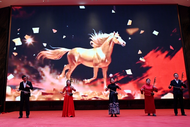 活动在舞蹈《鼓震北辛 万马奔腾》中拉开帷幕,歌舞表演者为现场群众带来了一场精美的文化盛宴。联欢会节目形式丰富多样,分为《金马开道 鼓震北辛》《马暖北辛 民生筑福》《马跃北辛 奋进如歌》《马绽北辛 芳华舞韵》和《金马同心 共赴新程》五个篇章,歌曲、相声、舞蹈等节目轮番上阵,精彩纷呈。节目既充满欢乐气息,又紧密贴合基层工作实际。音乐剧《社区阵线联盟》瞬间点燃现场气氛,展现出“北辛人”积极向上的精神面貌;歌曲《歌曲串烧》演唱环节,歌声里满是对北辛未来的美好祝福;手势舞《国家》节目气势昂扬,诉说着基层工作者立足岗位、服务百姓的初心与坚守。