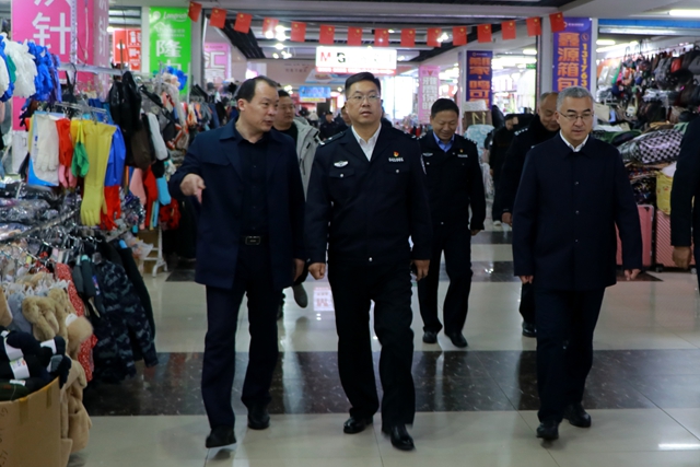 李涛一行来到伦达商贸城,通过实地察看、现场交谈等方式,详细了解了商贸城业态布局、商户入驻、商品供应、运营现状以及消防安全措施落实等有关情况。