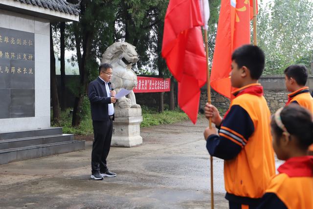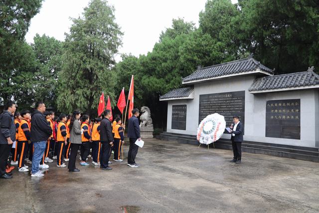 纪念仪式上,镇党委副书记吕士曦宣读祭文,党委委员、宣传委员、武装部长李铭镇主持。全体人员庄严肃静地站在烈士纪念碑前,敬献花圈、向烈士三鞠躬、默哀,表达对革命先烈们的深刻缅怀和无比敬仰之情。随后全体人员缓步绕烈士陵园一周进行凭吊。