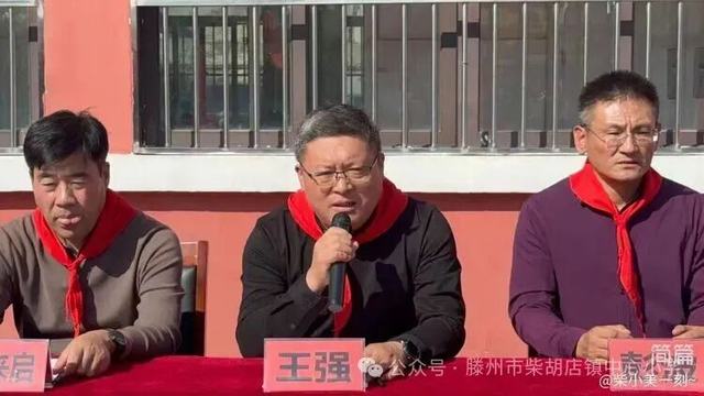 随后,柴胡店镇中心小学党支部书记、校长王强作讲话。讲话中,他希望老队员和新队员在党的领导下,要争当新时代好少年,肩负起责任,在星星火炬的指引下,牢记党的教诲,全面发展,茁壮成长。