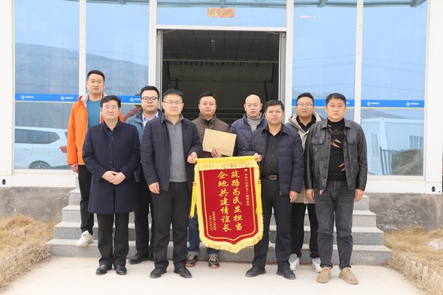 赠旗仪式上,吕士曦将印有“筑路为民显担当 企地共建情谊长”的锦旗送到企业负责人手中,对企业主动担当、积极作为,承诺为驻地村铺设400余米进村道路、助力乡村基础设施完善的举措给予高度肯定。他表示,进村道路是群众出行的“民生路”“致富路”,项目部的承诺既解决了群众出行难题,也为我镇乡村振兴注入了动力。