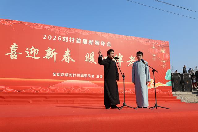 锣鼓喧天辞旧岁,欢歌笑语迎新春。为传承民俗文化,弘扬敬老爱老传统美德,丰富村民精神文化生活,营造喜庆祥和的新春氛围,2月7日上午,柴胡店镇2026年刘村首届新春年会在刘村梨园风景区广场正式启幕。这场为期两个多小时的文化盛宴,汇聚了全村老少的期盼与热情,现场掌声、笑声、欢呼声此起彼伏,为寒冬里的刘村增添了浓浓的暖意与年味。