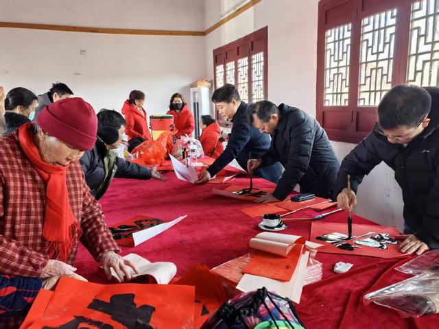 活动现场虽无奢华布置,却处处充满烟火气与乡土情,一边是文艺表演的精彩上演,一边是志愿者与村民围坐在一起包饺子的热闹场景,大家分工协作、有说有笑,一个个饱满的饺子承载着新春的祝福与邻里的情谊。同时,志愿者们还为现场村民送上亲手书写的福字,为老年朋友们戴上保暖围巾,一句句问候、一份份关怀,让整场年会暖意融融。村民们扶老携幼、欢聚一堂,一边欣赏精彩节目,一边畅谈家常趣事,共话新年美好愿景,充分展现了刘村村民团结和睦、积极向上的精神风貌。