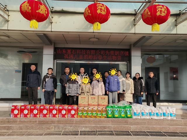 新春将至,暖意渐浓。为切实关心关爱柴胡店镇孤困儿童群体,帮助孩子们度过一个温暖、祥和、幸福的春节,2月11日,山东基石科技有限公司开展爱心捐赠活动,为辖区孤困儿童送去精心筹备的新春生活物资,用实际行动践行企业社会责任,传递社会温情与关怀。公司经理张驰带队,亲手将爱心物资送到孩子们手中,把温暖与希望传递到每一个需要关怀的家庭。柴胡店镇党委副书记吕士曦、副镇长马运喜、社会事务管理办公室副主任李刚参加捐赠活动。