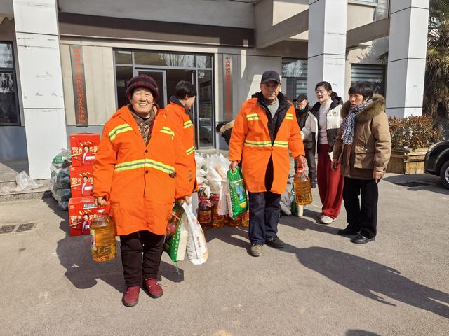 慰问活动采取“集中分发+流动送暖”相结合的方式有序开展。在会场集中发放点,慰问小组将满载心意的慰问礼包逐一送到环卫工人手中,礼包内装满了大米、食用油、面粉等实用物资,每一份物资都承载着商会对老党员和环卫工人的深切关怀。同时,考虑到部分环卫工人仍在街巷一线作业,慰问小组驱车沿着乡镇主干道,一路寻访忙碌的身影,每当看到正在作业的环卫工人,便缓缓停车,主动上前递上慰问礼包,真诚道一声“师傅,辛苦了!提前给您拜个早年”。