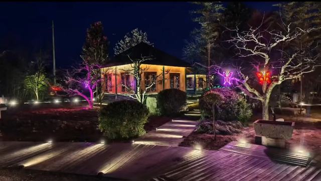 走进梨园,暖黄灯带沿着古树枝干蜿蜒延伸,将虬劲的枝丫勾勒成灵动的剪影,仿佛为百年老树披上璀璨华裳。步道两侧,梨花主题灯饰错落点缀,暖光与冷光交织错落,时而温柔静谧,时而绚烂灵动,漫步其间,步步皆是诗意。景区广场大门大型激光光影秀精彩上演,灯光与音乐、实景完美融合,动态呈现梨园四季更迭、梨花绽放的盛景,让游客在赏景之余,感受传统文化的独特魅力。