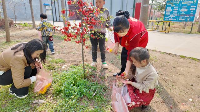 恰逢春日繁花盛开,志愿者带领孩子们走进户外,开展“收集春日花瓣,践行环保理念”实践活动。孩子们化身“环保小卫士”,收集飘落的梨花、桃花等花瓣,在亲近自然中体会环保内涵。