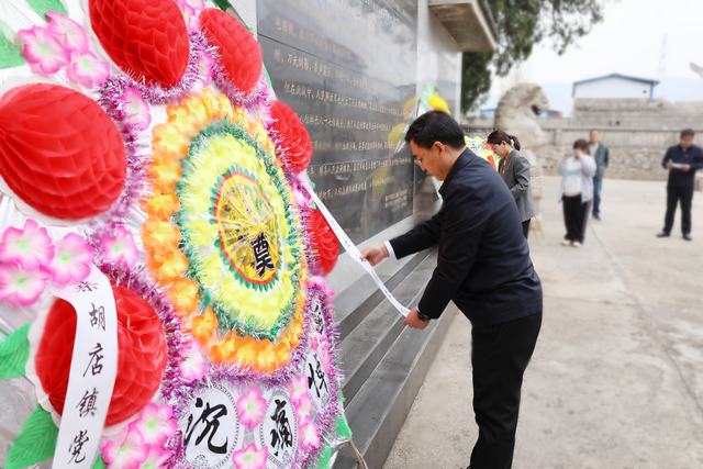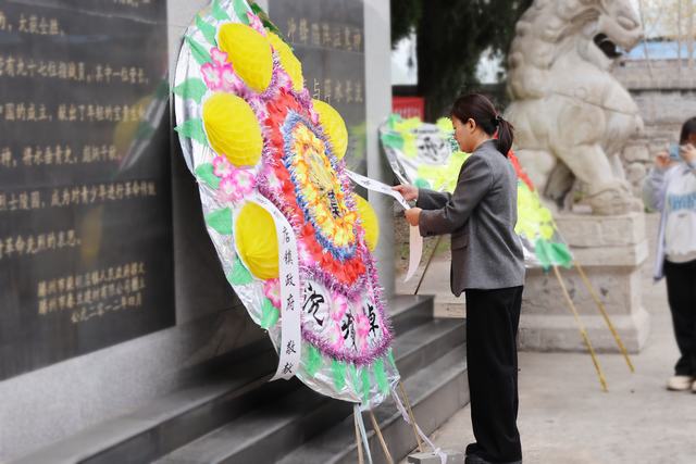 随后,柴胡店镇党委书记孔维刚,党委副书记、镇长方梅缓步走向烈士纪念碑,为敬献的花圈整理缎带,整理过程中神情庄重,表达对先烈的深切缅怀与崇高敬意。整理完毕后,全体人员向烈士纪念碑行三鞠躬礼,以此致敬革命先烈,传承英烈精神。