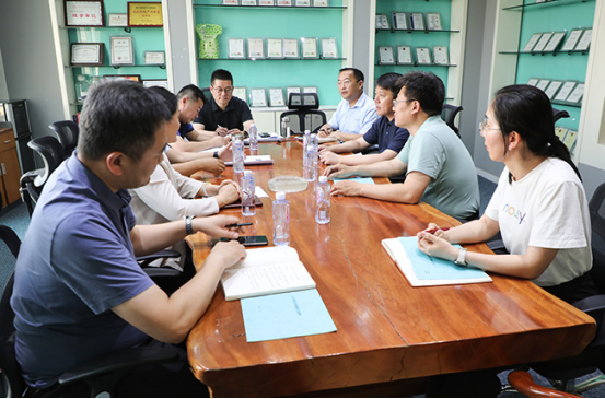 李达一行深入到山东辛化硅胶有限公司,与镇、企业负责同志深入座谈交流,详细了解企业技术创新、人才引育、项目建设和生产运行情况,并对下一步工作提出针对性意见建议。