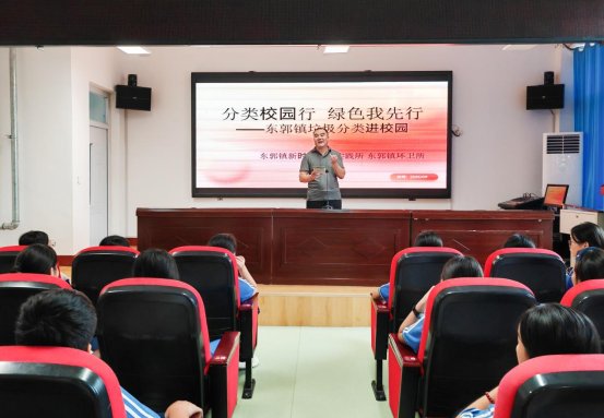 9月16日,东郭镇环卫所携手东郭镇新时代文明实践所走进东郭中学,以“分类校园行,绿色我先行”为主题开展宣传活动。一堂兼具知识性与趣味性的垃圾分类课在此开讲,旨在引导青少年树立环保意识,推动形成“教育一个学生、影响一个家庭、带动整个社会”的垃圾分类良性氛围。