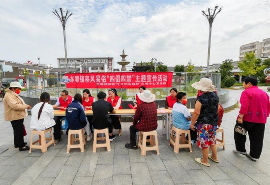 9月18日,东郭镇新时代文明实践所联合东郭中心卫生院在中村文明实践广场开展移风易俗“四倡四禁”主题宣传活动。镇团委、妇联、科体岗志愿者及辖区群众参加活动。