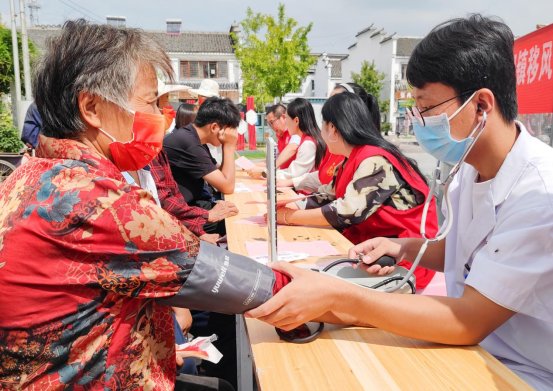 东郭中心卫生院的志愿者还在现场开展了健康义诊活动,为村民量血压、测血糖,并提供健康咨询服务,将健康知识与移风易俗理念一同传递给大家。