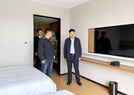 吕成民一行听取相关工作介绍,详细了解酒店开业筹备、人员配备、设施建设、功能布局及安全管理等方面的情况,实地察看客房、餐厅、会议厅等重点区域,询问开业前各项准备工作存在的难题,现场办公协调解决。