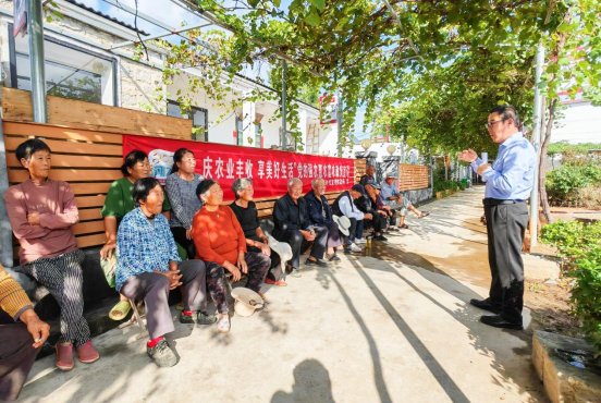 9月24日,东郭镇新时代文明实践所组织的“运河大集”“庆农业丰收 享美好生活”政策宣讲活动走进小党山村。这场将党的强农惠农富农“政策礼包”送到群众家门口的活动,让丰收季的村民吃透政策红利,为乡村振兴注入新鲜动能。活动现场,葡萄架下人头攒动,村民们带着秋收的喜悦围坐聆听,让政策解读多了“烟火气”、少了“距离感”。
