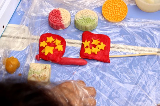 活动伊始,志愿者们通过趣味动画与历史故事,带领孩子们了解中秋团圆文化与国庆发展历程,让孩子们在轻松愉快的氛围中感受到了中华文化的博大精深。随后开展“不沾布手工国旗制作”,亲子协作完成创意作品,让爱国情怀在指尖传递。