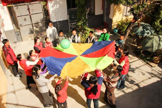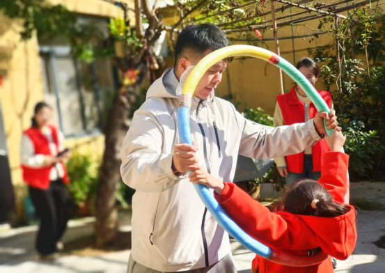 在心理投射绘画环节,孩子们拿起画笔,将心中的奇思妙想尽情勾勒。志愿者们耐心引导,帮助孩子们从画作中发现自身的闪光点,让他们在创作中收获自信。户外游戏时间更是欢乐满满,彩虹伞抛球、“老狼老狼几点了”等经典项目轮番上演,孩子们在奔跑嬉戏中学会了信任与分享,清脆的笑声回荡在文明实践家庭站的上空。