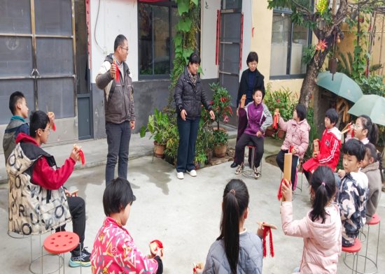 11月9日,在东郭镇前明村新时代文明实践家庭站,欢声笑语与悠扬乐声交织成温暖的乐章。东郭镇新时代文明实践所联合华彩音乐金点子商学院,再次为这里的少年儿童带来葫芦丝演奏与快板特色课程,让孩子们在周末时光中感受传统文化与艺术的魅力。