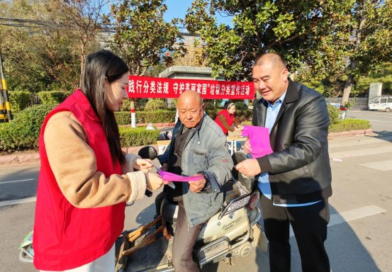11月21日,东郭镇环卫工作岗、东郭镇新时代文明实践所联合团委、妇联、科体岗、东郭中心卫生院等部门志愿者,在镇驻地开展“践行分类法规 守护美丽家园”垃圾分类主题宣传活动,通过多元形式普及分类知识,凝聚环保共识,为建设美丽家园注入绿色动力。