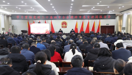 12月15日,学习贯彻党的二十届四中全会精神市委宣讲团到东郭镇宣讲。市自然资源局党组书记、局长,市林业和绿化局局长、四级调研员邢毅作宣讲报告。东郭镇党委书记吕成民主持报告会。全体领导干部,全体机关干部,市派第一书记,镇直部门负责人,各村党支部书记参加会议。