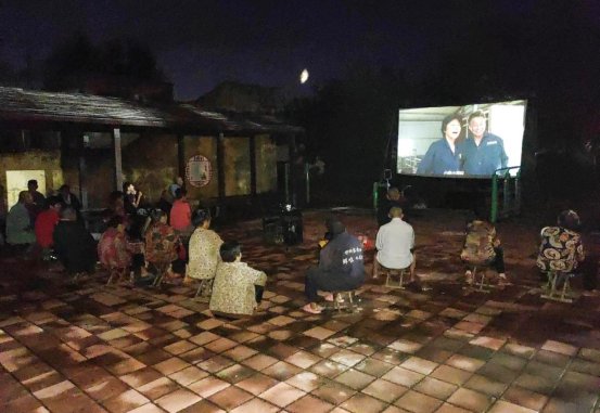 为全方位保障放映活动的有序开展,充分发挥各村三支志愿服务队的力量,为每个放映点配齐专属服务力量,从场地布置、设备调试到秩序维护、便民指引。每当夜幕降临,一束束放映光束划破乡村夜空,文体广场上便热闹起来。银幕前,留守老人与儿童围坐一堂,在光影故事中享受集体娱乐时光;广场上,邻里乡亲借着观影契机互动交流,拉家常、话发展,原本寂静的乡村夜晚被欢声笑语填满,成为拉近情感距离、凝聚邻里温情的温馨空间。