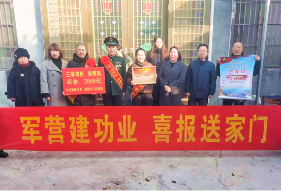 为弘扬“拥军优属、拥政爱民”的光荣传统,增强军人军属荣誉感,激励现役军人献身国防、再立新功,1月15日,滕州市军休所副所长赵芳,滕州市军休所办公室主任张雷一行到东郭镇前村走访慰问,为荣立三等功的现役军人家庭送上喜报。东郭镇便民服务中心主任孙彦苹及相关负责同志参加活动。
