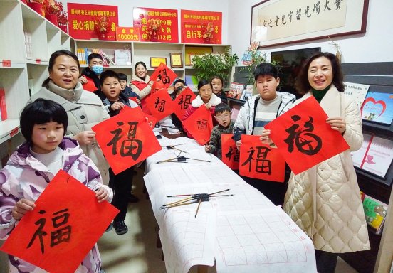 笔墨传情,福暖人心。李常玉带领孩子们开展“笔墨传福”写福字活动,红纸铺展、墨香萦绕,志愿者们耐心指导孩子握笔、运笔,一张张稚嫩却满含诚意的福字跃然纸上。现场还通过恳谈表格与趣味游戏,让孩子们在轻松氛围中分享感受,传递新春祝福。