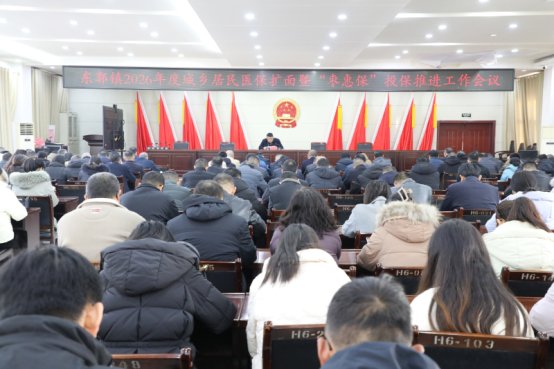 2月5日,东郭镇在镇六楼会议室召开2026年度城乡居民医保扩面暨“枣惠保”投保推进工作会议。副科级以上领导干部,各党总支书记,全体机关干部参加会议。