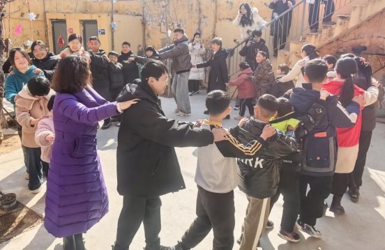 最受孩子们欢迎的当属“指尖传福,巧手造桶”手工环节。崔然老师指导孩子们运用剪、折、粘等技能,将福字、红果等吉祥元素融入手工作品,不仅锻炼了精细动作,更让孩子们在创作中传递新年祝福。户外畅玩环节,张永超老师组织的“冰蹲蹲”“捉泥鳅”游戏趣味十足,孩子们在协作互动中尽情释放活力,欢声笑语回荡在活动现场。